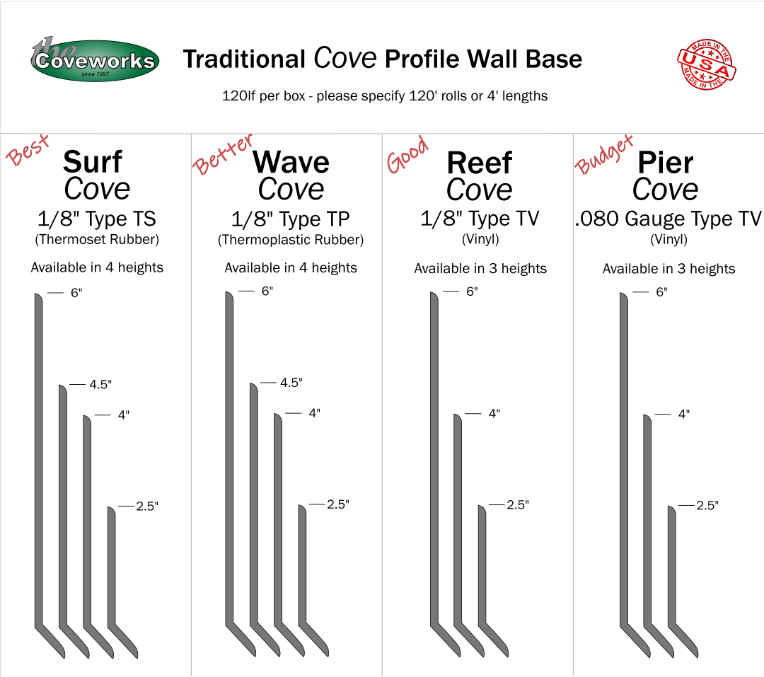 The Zest collection is more than just architectural profiles. Here you will find traditional straight profile wall base offered in the entire Zest color palette. Choices include 3 standard materials and 2 thicknesses to meet any budget.